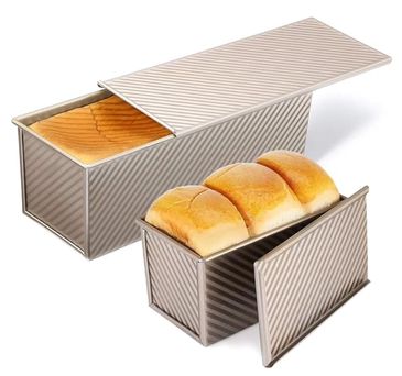 PADELE Pullman Lot de 2 moules à pain avec couvercle, 33 x 10,2 cm et 22,9 x 10,2 cm (capacité de pâte de 1 kg et 0,5 kg), moules à pain antiadhésifs pour pain fait maison, doré