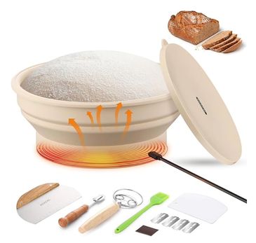 KOACKL Chauffe-démarreur de pain au levain, panier à pain de 23 cm pliable à thermostat en silicone, fournitures de cuisson du pain au levain à chauffage réglable avec couvercle.